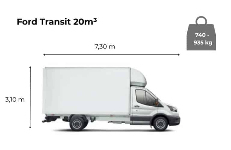 - Large moving truck 20 m³ – Rear lift makes large transports easier